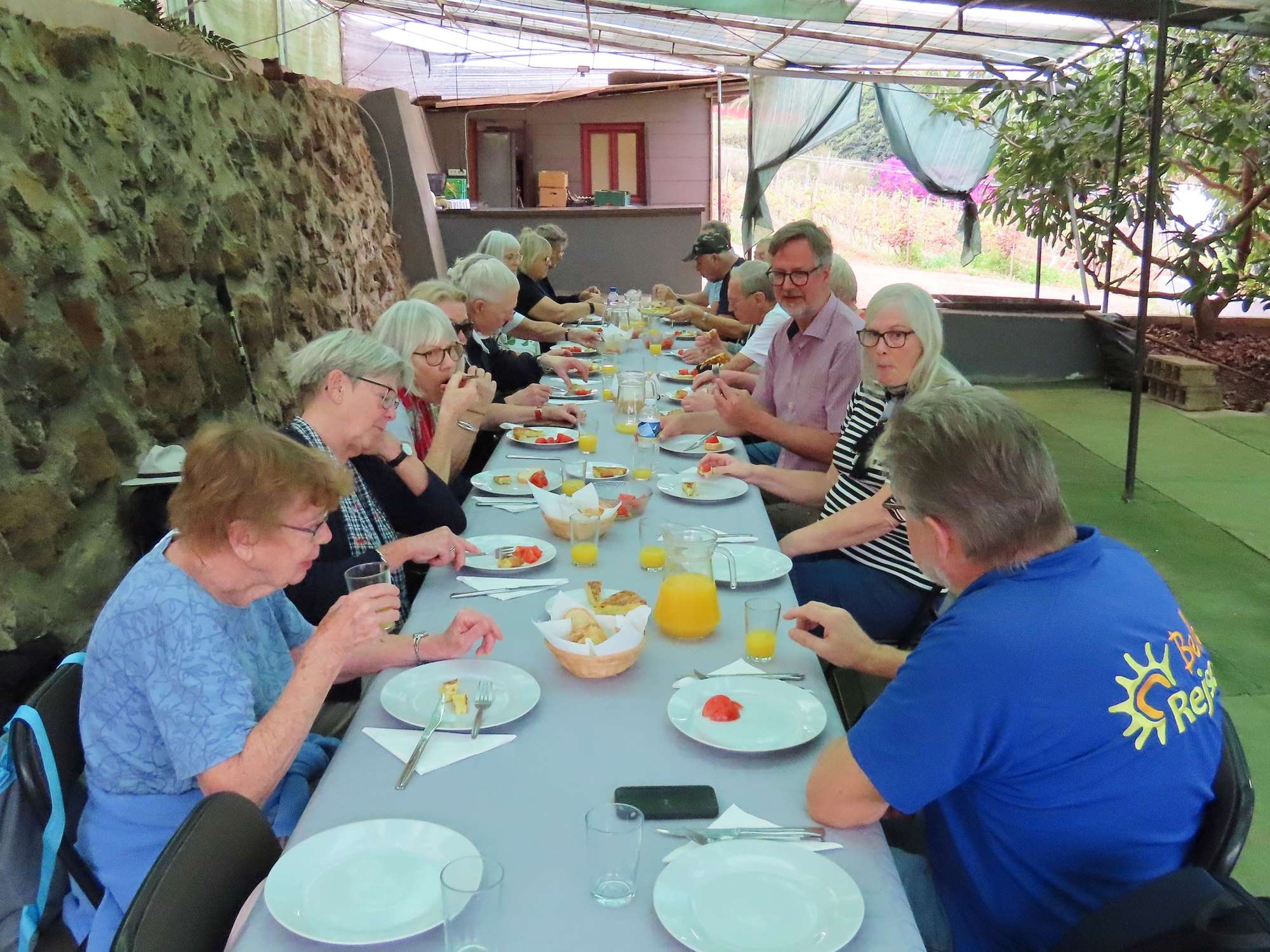 Francisco har lavet helstegt skinke, og vi guffer løs. Med vine til, naturligvis. Mange køber nogle flasker med hjem. En dejlig souvenir.