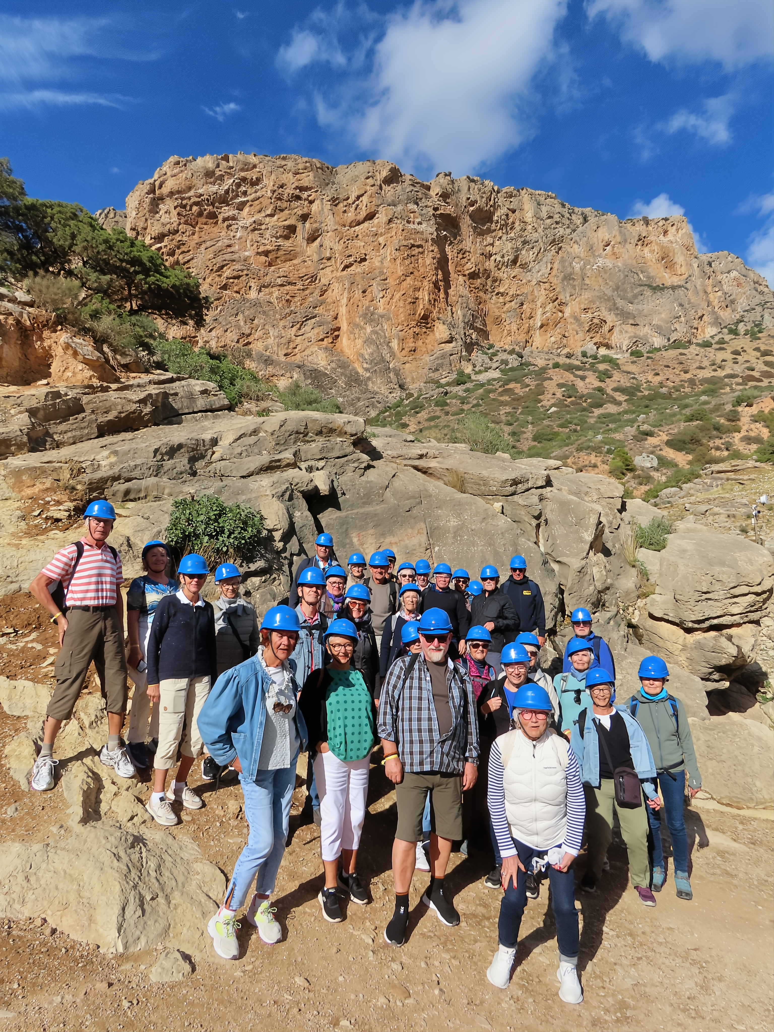 Stien snor sig gennem kløften, hvor vi ind i mellem også får fast grund under fødderne. Det er så smukt. Det er så vildt. Vi ser flere bjerggeder på vejen. Over os svæver flokke af gribbe. Er det os, de har fået øje på? I kan godt glemme det. I Club Bella gennemfører vi, hvad vi starter på!