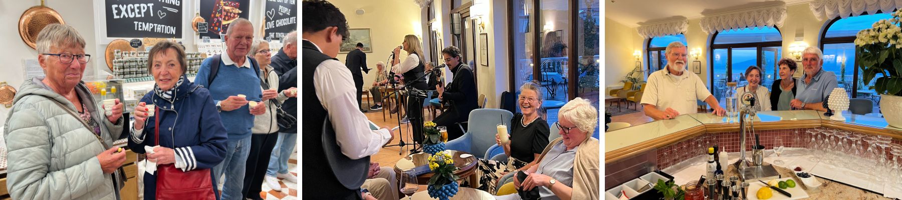 Her slutter fem ekstra gæster sig til gruppen, der allerede hygger og snakker. Vi er på vej. Næste stop Napoli i Bella Italia. I flyet fortsætter snakken. Er nye venskaber allerede på vej? Tiden vil vise det. Nu skal vi lige frem til hotellet først.