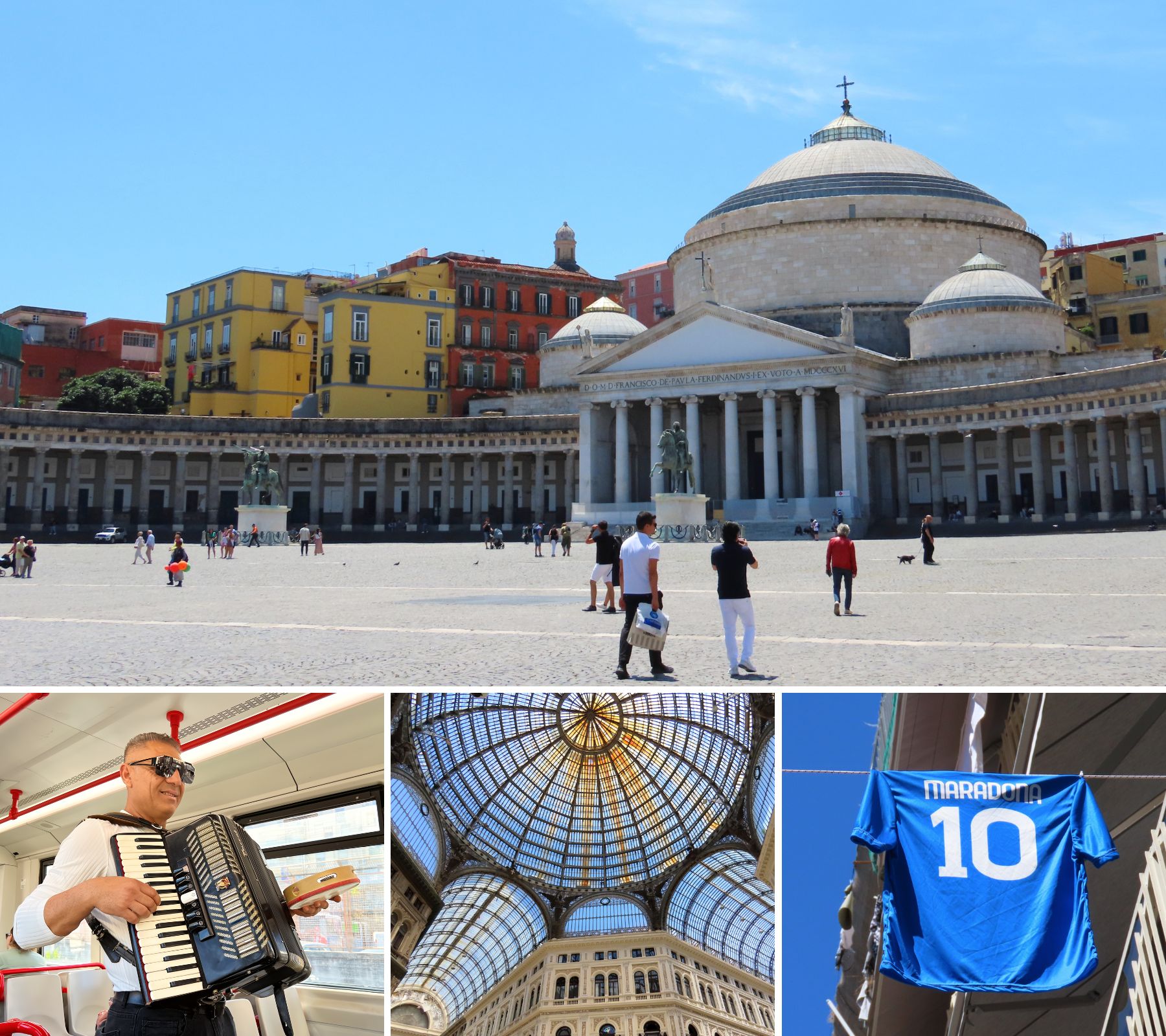 Ved et nonnekloster får jeg gratis kage og en snak om klostret. Den store katedral ved siden af er imponerende og fredfyldt. Omvendt er de snævre gader tæt på havnen fulde af liv. Piazza del Plebiscito med kongepalads og den store basilica er et utroligt syn. Og dagen i dag er åbenbart højsæson for polterabender, så der er gang i den.