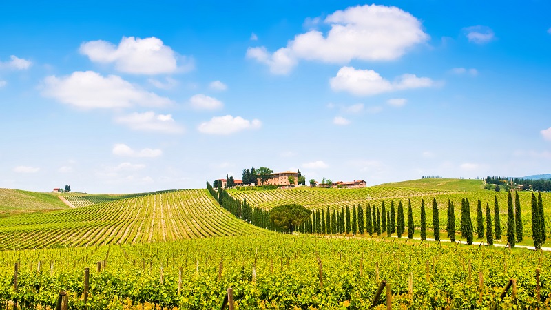 Når vi kører fra sted til sted med bus, tog og kabelbane, er det med udsigt til bakkede landskaber med vinmarker og olivenlunde, og grønne cypresser bryder ofte landskabsbilledet som små pejlemærker mod næste oplevelse. Ja, selv transporten er eventyrlig i Toscana.